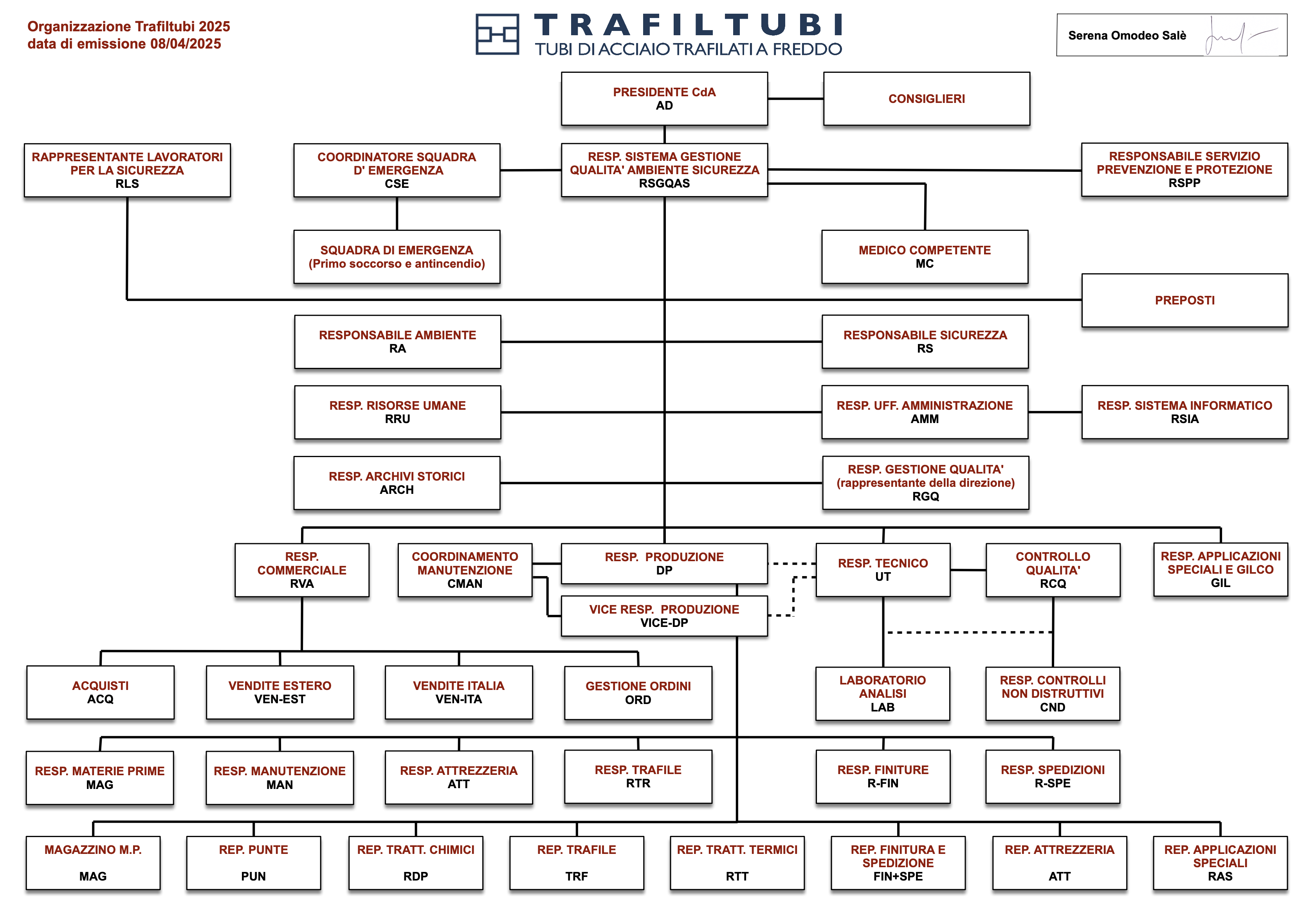 Fa parte della trasparenza della nostra politica rendere pubblico lo schema dell’organizzazione aziendale: